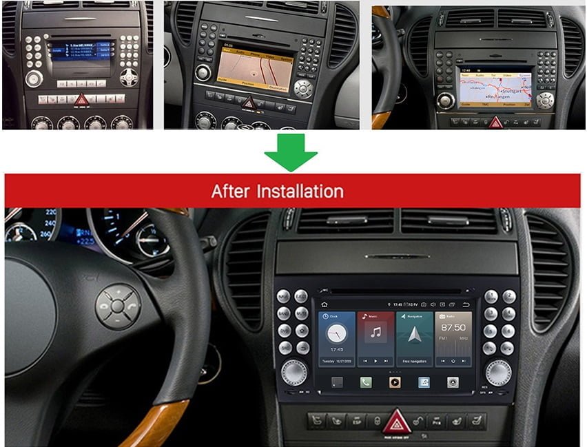 Uppgradera din Mercedes med fantastiska Android 7″ pekskärm bilstereo, utformad för Mercedes SLK (R171) 2004-2010, bra ljud och användbara funktioner.